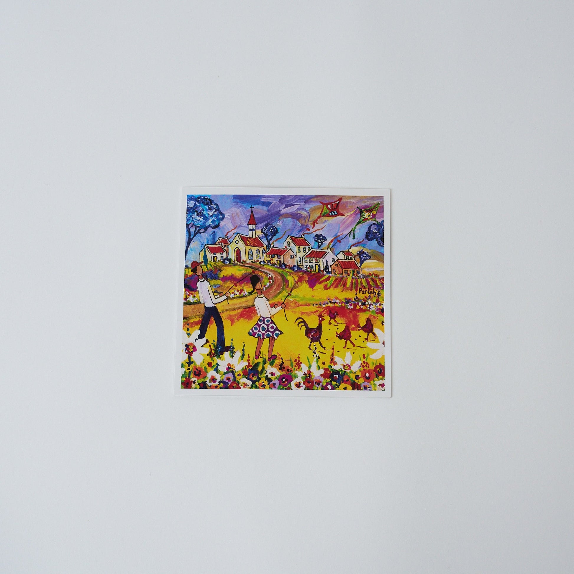 Boy and Girl Flying Kites Gift Card